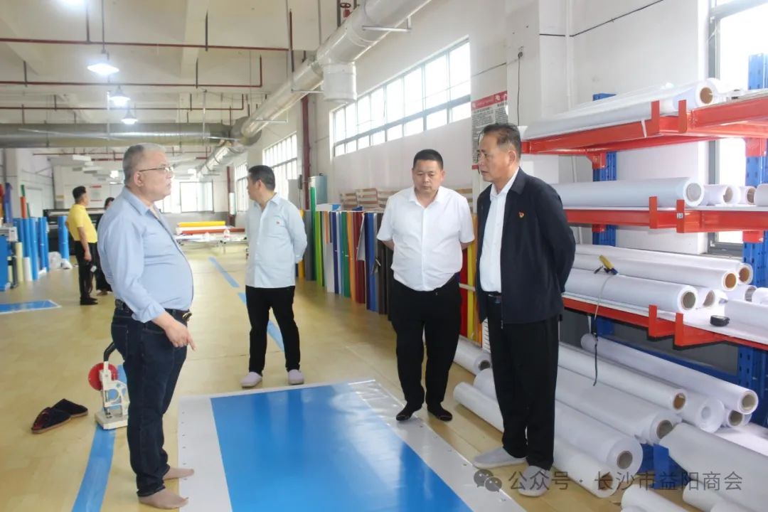 5月10日上午,应商会理事陈建文邀请,长沙市益阳商会星沙片区组织部分会员到位于长沙县果园镇的长沙满江红广告材料有限公司走访交流。
