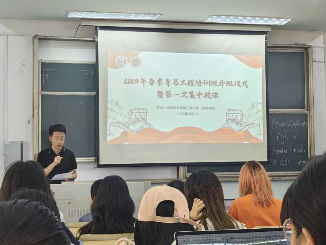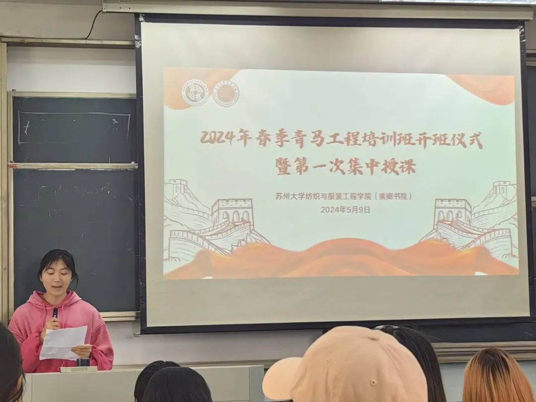 2024年5月9号下午,纺织与服装工程学院春季“青马工程”培训班开班仪式暨第一次集中授课在工科楼407教室举行。本次活动邀请了马克思主义学院副教授孔川老师进行授课,学院党委副书记、副院长虞岚,院分团校指导老师李磊出席了开班仪式,全体“青马工程”培训班学员参加了本次活动,活动由鲍汝琳同学主持。