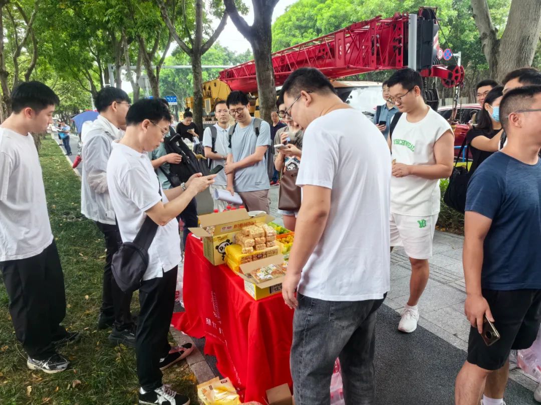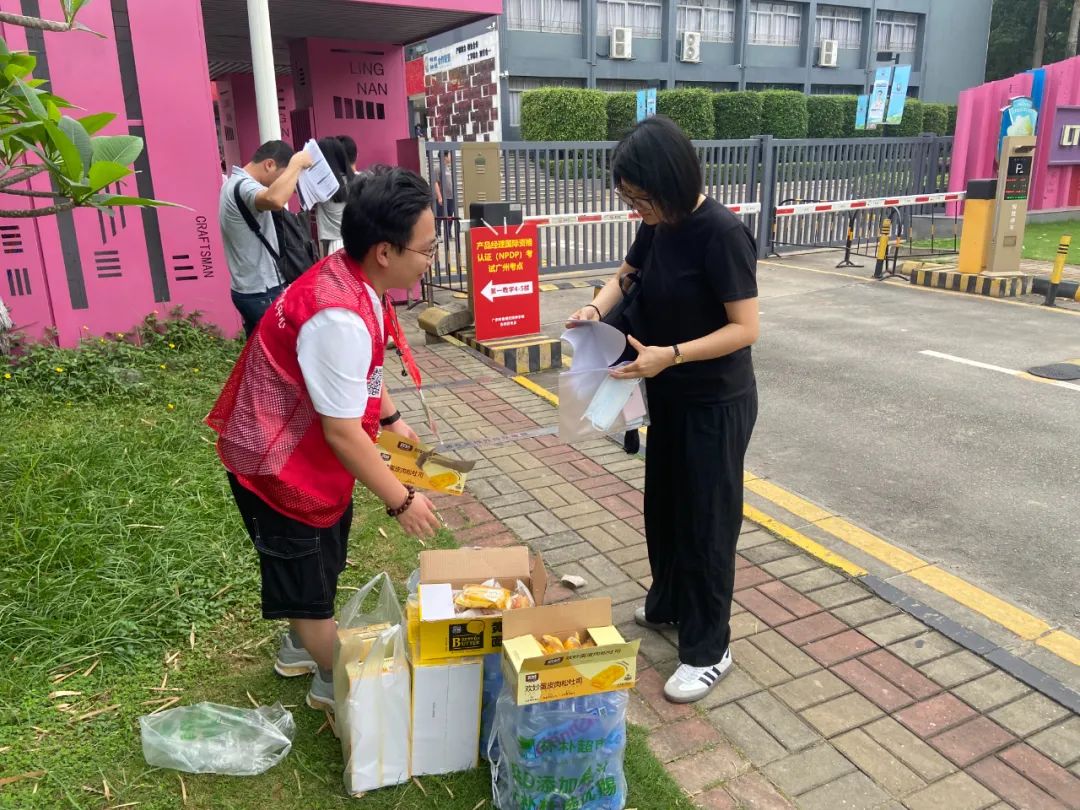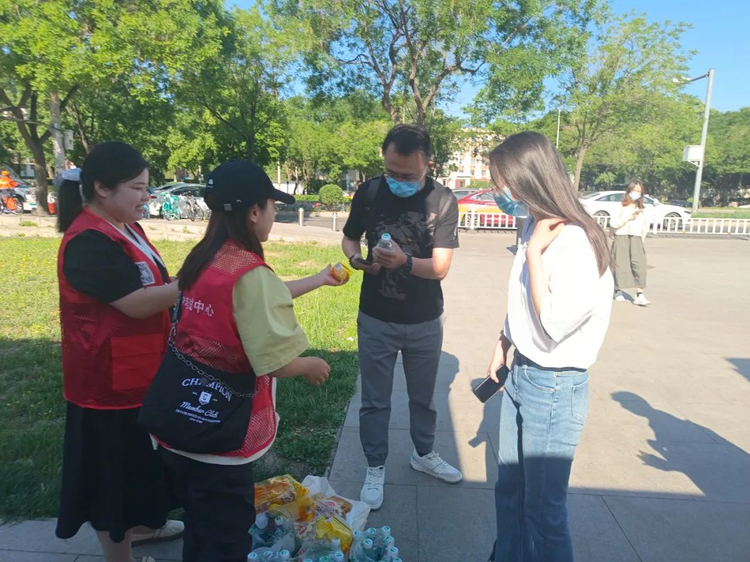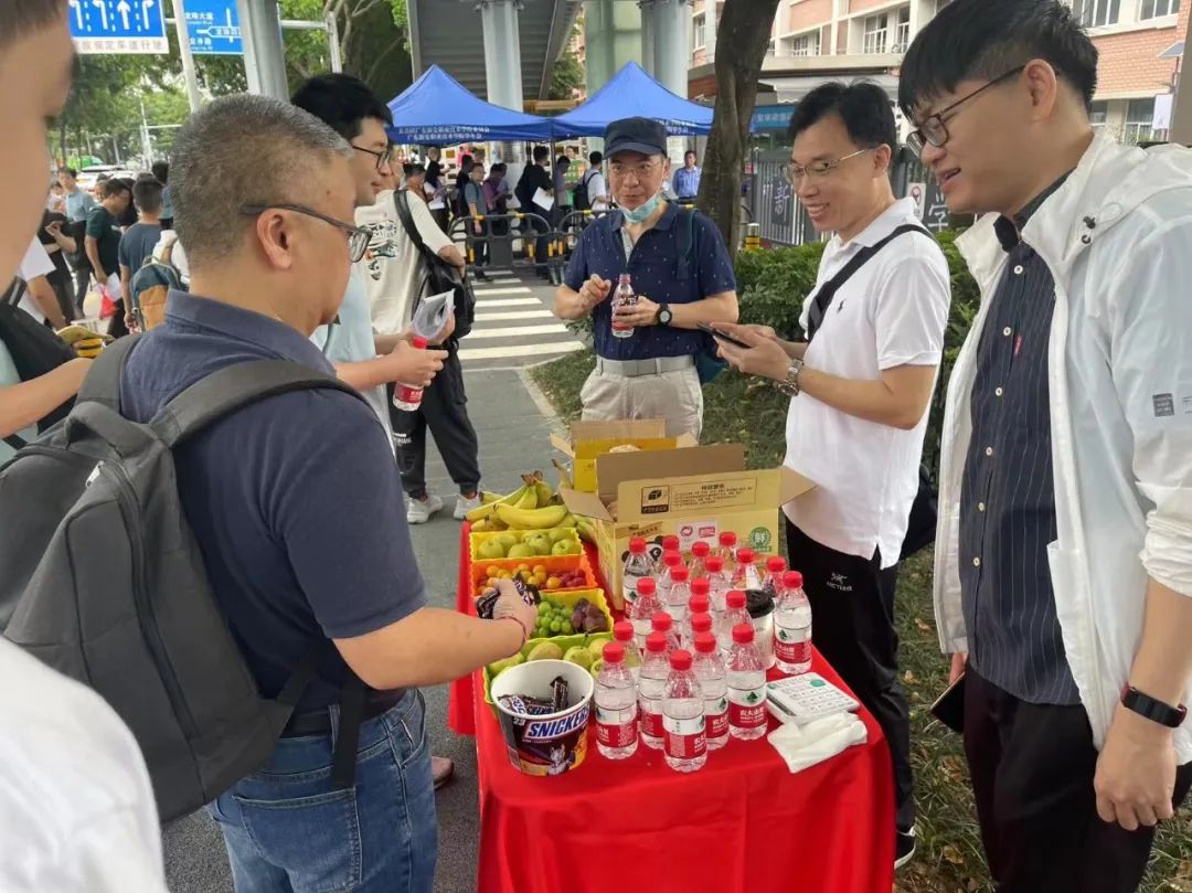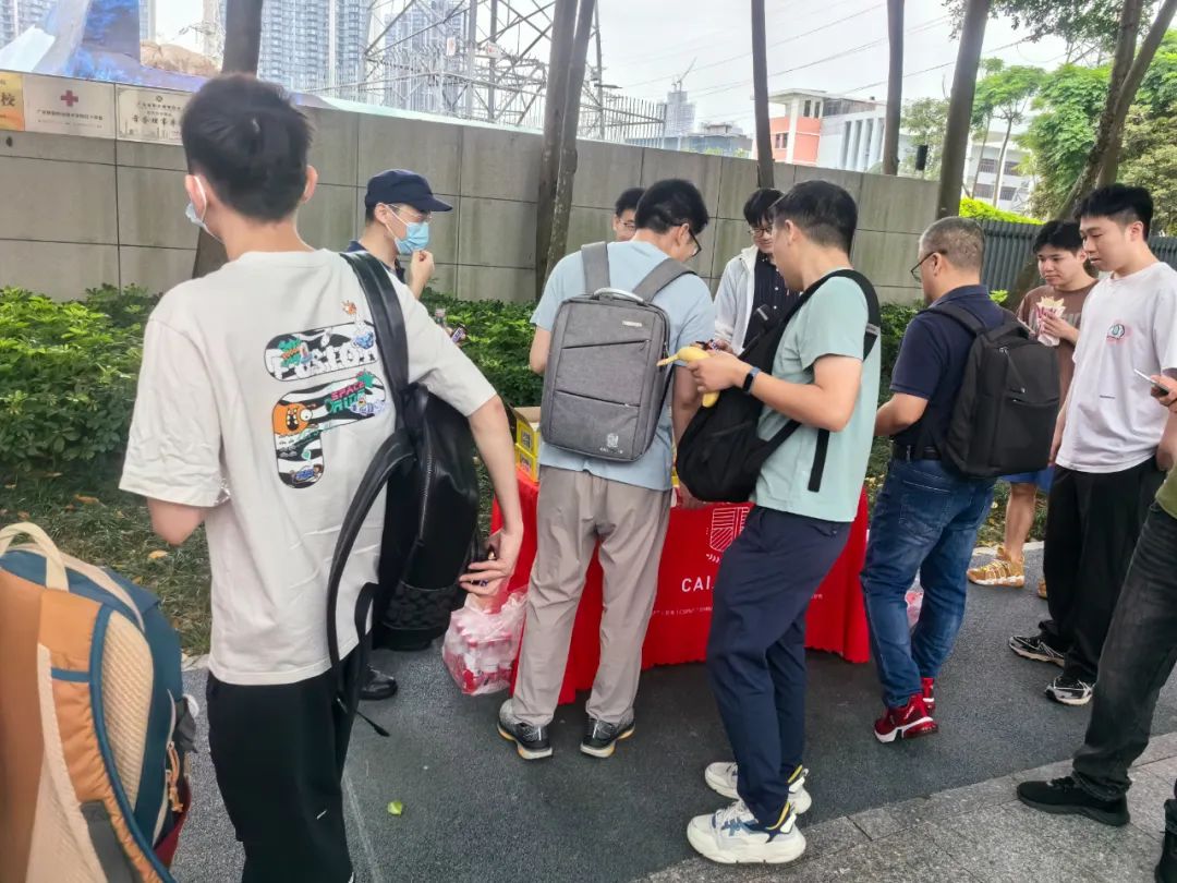 才聚工作人员为考生发放食品(图源:才聚)