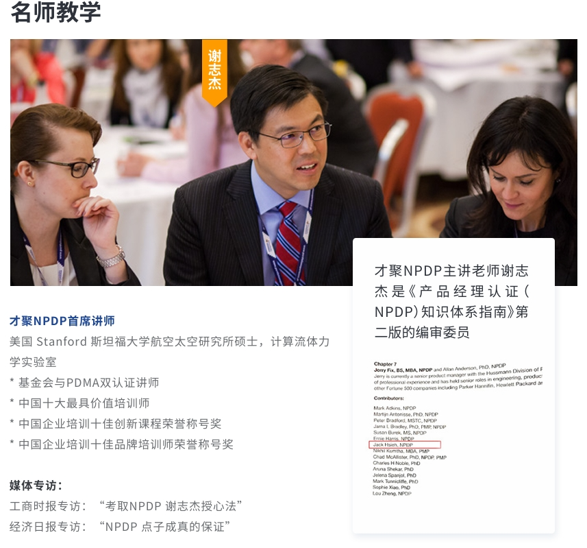 “沧海横流显砥柱,万山磅礴看主峰”,作为NPDP产品经理培训领域的标杆企业,才聚不断强化责任意识和使命担当,优化师资队伍,强化课程质量,提升学习体验。