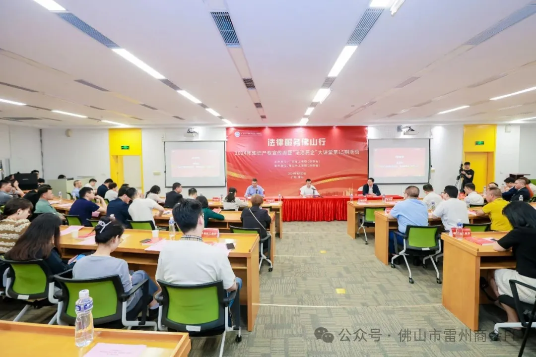 为贯彻落实党中央、国务院关于促进民营经济发展壮大的意见精神,聚焦省委“1310”具体部署,落实全省高质量发展大会和全省民营企业产业科技互促双强动员部署会精神,以高质量的法治护航民营经济高质量发展。4月23日,广东省工商联举办“法律服务佛山行”——2024年知识产权宣传周暨“法治民企”大讲堂第15期活动。广东省工商联党组成员、专职副主席冯日光,佛山市委常委、统战部部长丁锡丰出席活动并致辞。佛山市雷州商会会员刘洪滨代表出席活动。