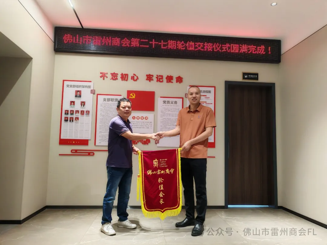 2024年5月6日,佛山市雷州商会第二十七期(4月)轮值会长王明宇先生与第二十八期(5月)轮值会长翁伟文先生顺利完成轮值会长交接仪式!