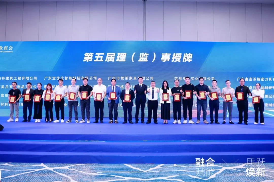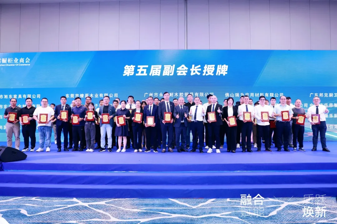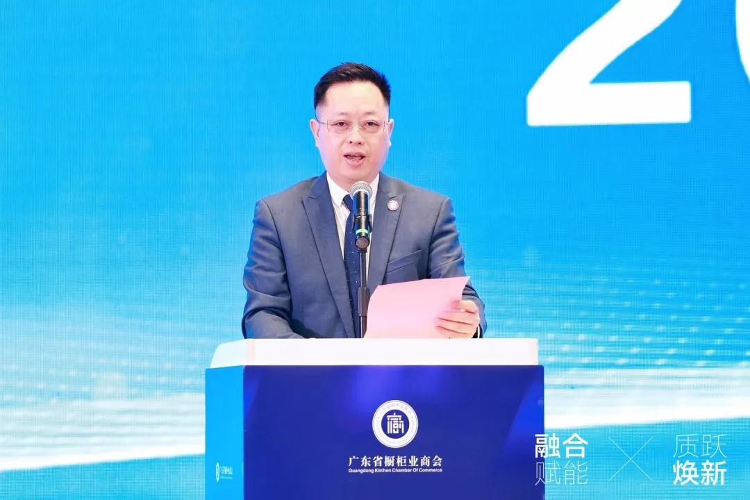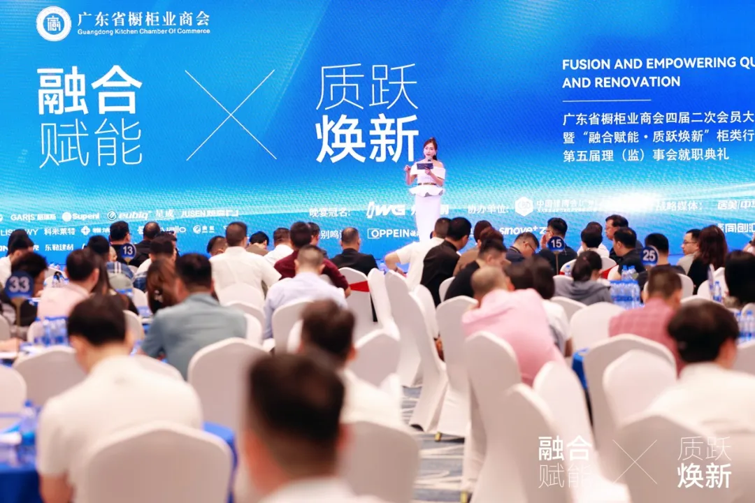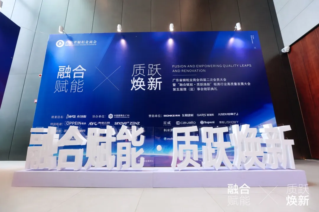 5月9日下午,由广东省橱柜业商会主办,中国建博会(广州)协办的“广东省橱柜业商会四届二次会员大会【融合赋能·质跃焕新】柜类行业高质量发展大会暨第五届理(监)事会就职典礼”在南海国际会展中心盛大举办。众多行业大咖嘉宾、精英代表及商会会员齐聚,深入剖析柜类行业涌现的新态势,展望新时代下柜类行业高质量发展的宏伟蓝图。