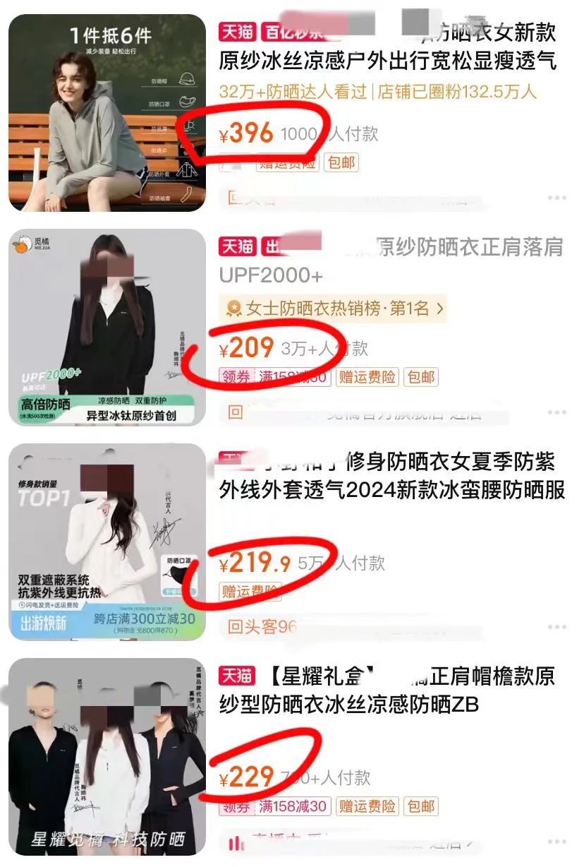 市面上的品牌防晒衣,铺天盖地的广告营销动辄大几百: