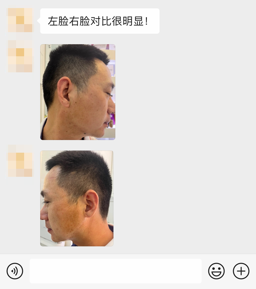 左脸被日光暴晒已经明显有黑色素沉着了!