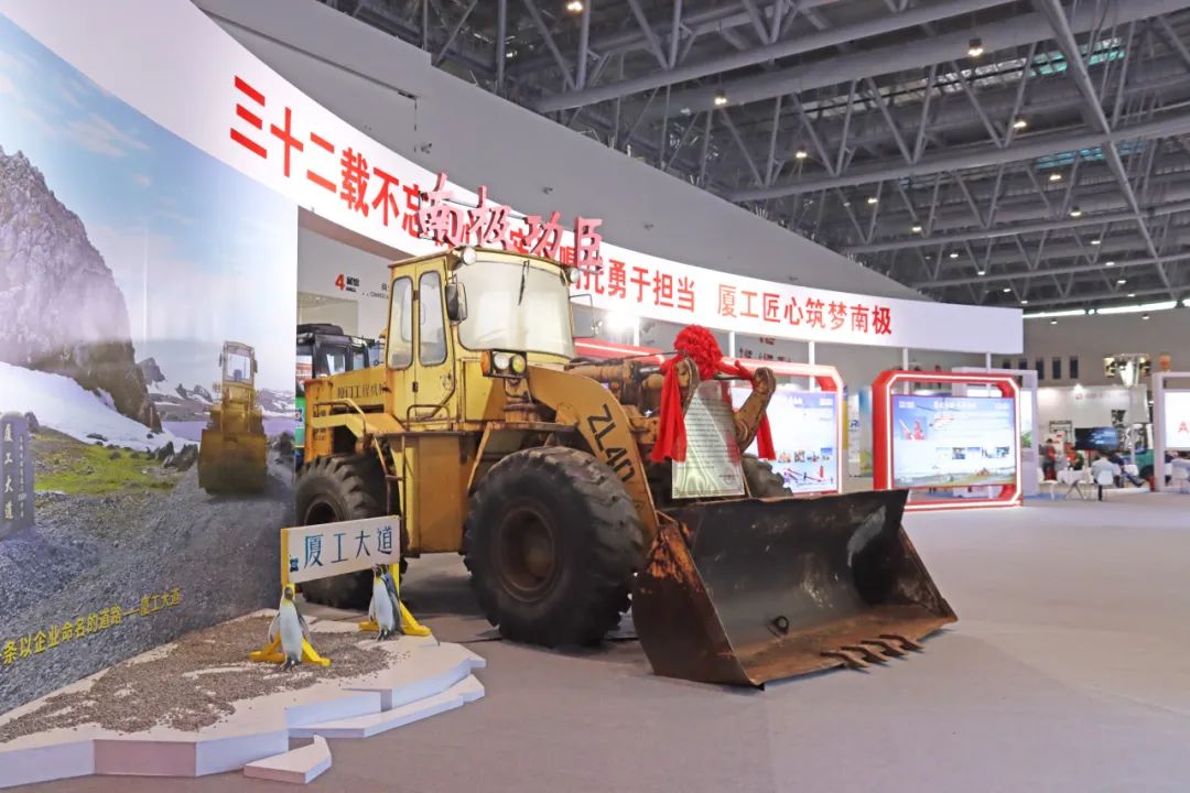 该展区以"真实担当 使命必达 极地科考 厦工同行"为主题,展示32年来厦工先后20人、45人次,13台设备参与国家极地科考建设的荣耀历程,有力保障了极地科考工作顺利进行。