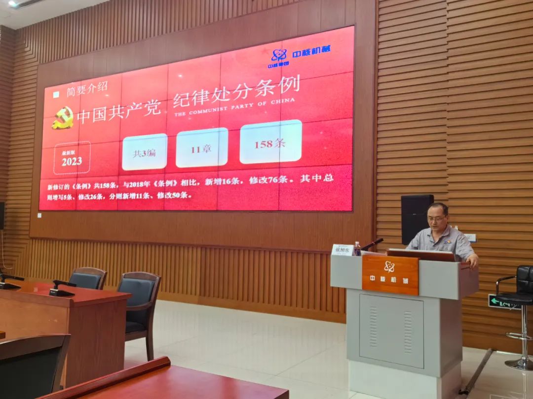 张旭东以“原原本本学党纪 把准矫正言行标尺”为主题,围绕《条例》意义、修订要点、《条例》和《廉洁自律准则》全文等五方面,为与会人员详细地讲述了一堂纪律教育专题党课。他要求,要以党纪学习教育活动为契机,加强党纪知识学习,切实做到学纪、知纪、明纪、守纪,把明确言行的衡量标尺印刻于心。