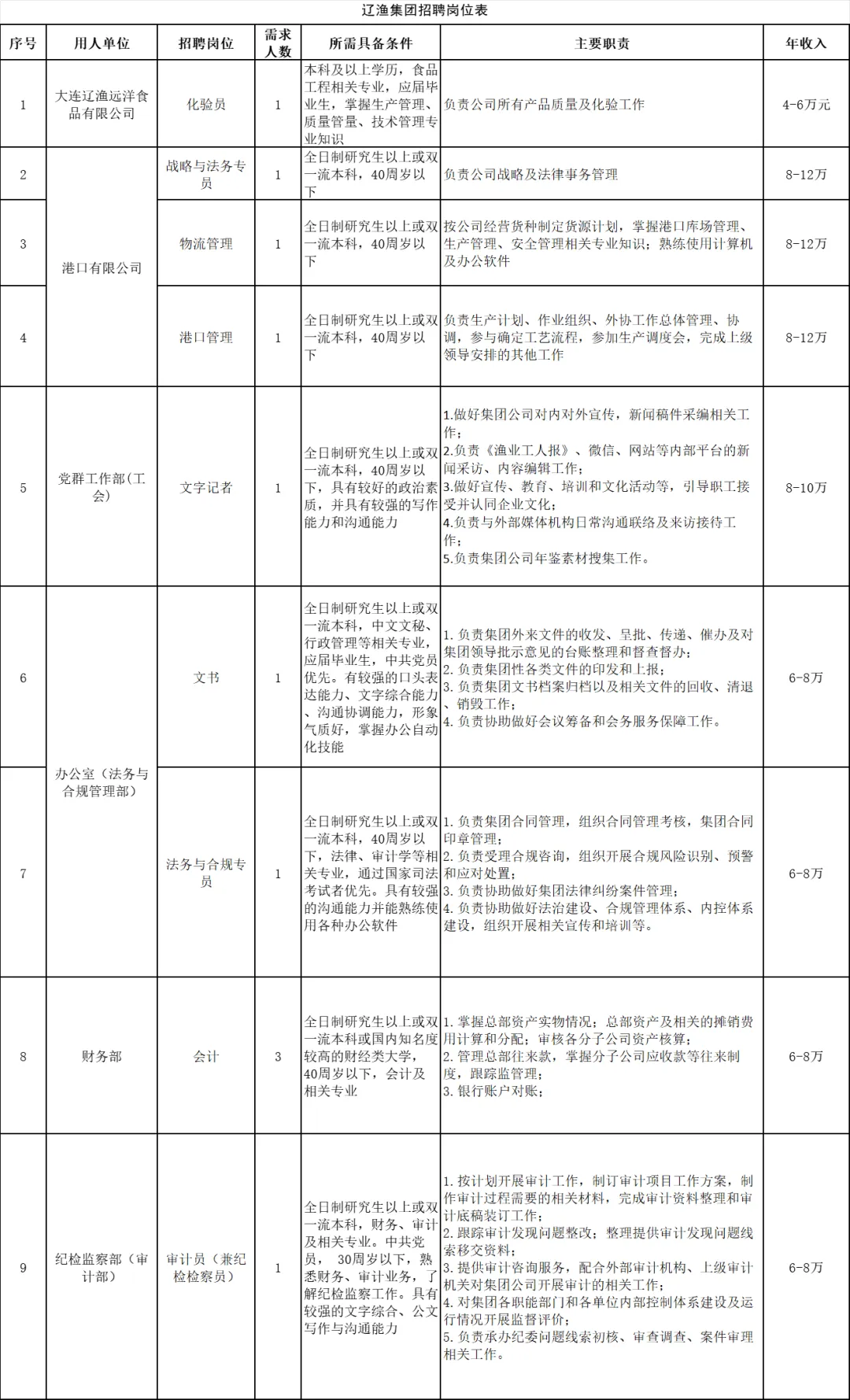具体岗位及条件见附件。