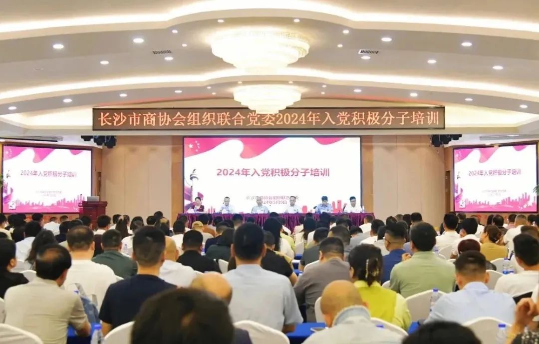 为落实好党员发展培训工作,进一步提升党组织书记抓党建工作能力,提高入党积极分子对党的认识。2024年5月9日,长沙市商协会组织联合党委在通程麓山大酒店组织了2024年入党积极分子集中培训。我会党支部党建工作负责人以及入党积极分子,商会副会长陈咸锡,会员陈林、刘友亮,以及各商会党支部入党积极分子300余人参加了此次培训会议。