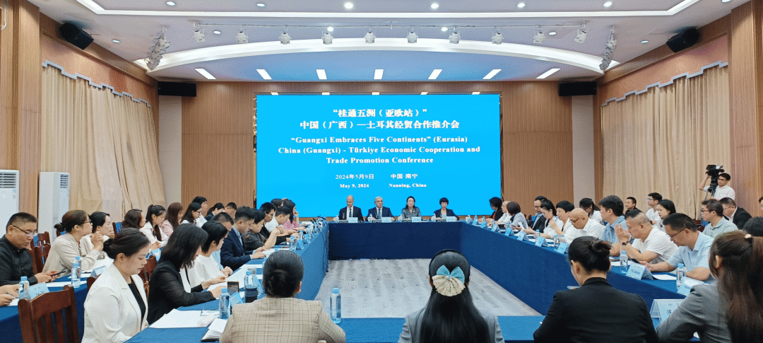 5月9日,由广西贸促会与土耳其驻广州总领事馆共同主办的“桂通五洲(亚欧站)”中国(广西)—土耳其经贸合作推介会在南宁举行,旨在增进了解,进一步拓展广西与土耳其在经贸领域的交流与合作。土耳其驻华大使伊斯梅尔·哈克·穆萨、广西贸促会会长杨雁雁分别致辞。商会党支部书记、执行秘书长李宙红应邀出席。