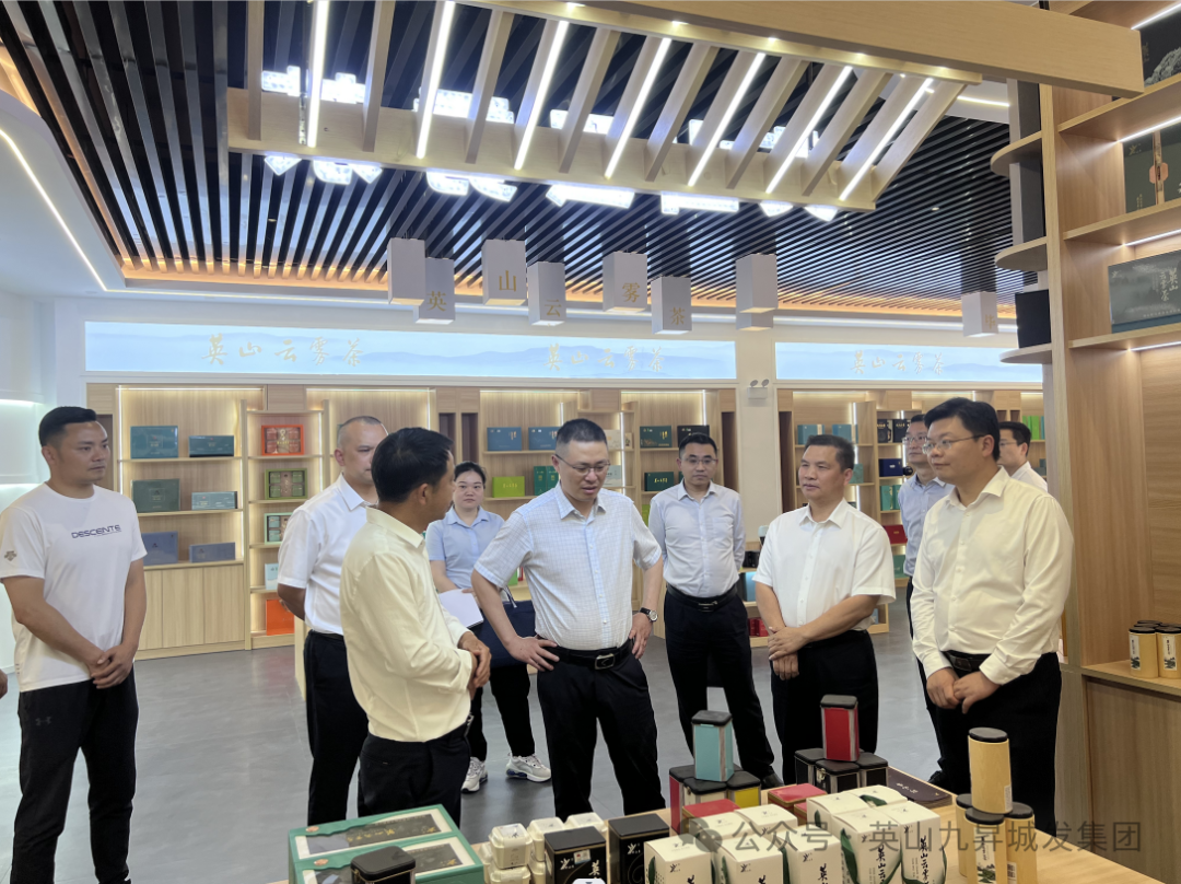 湖北省人大常委会党组副书记、副主任马国强带队到我县调研九龙湾生态产品实现中心项目、九昇茶业英山云雾茶标准化加工基地(英山云雾茶精制包装车间)项目。英山县委书记郑光文,县人大常委会党组书记、主任李文,县委副书记、政法委书记张春梅,县政府副县长陈琼、汪新炳及相关部门负责人陪同。集团党委书记、董事长方汇文,九昇茶业总经理田明健分别作项目介绍及相关情况汇报。