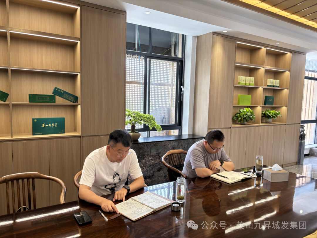 集团党委成员、副总经理、文旅公司总经理钱诚,九昇文旅公司副总经理肖杨、周彬组织文旅公司干部职工召开近期工作部署会。