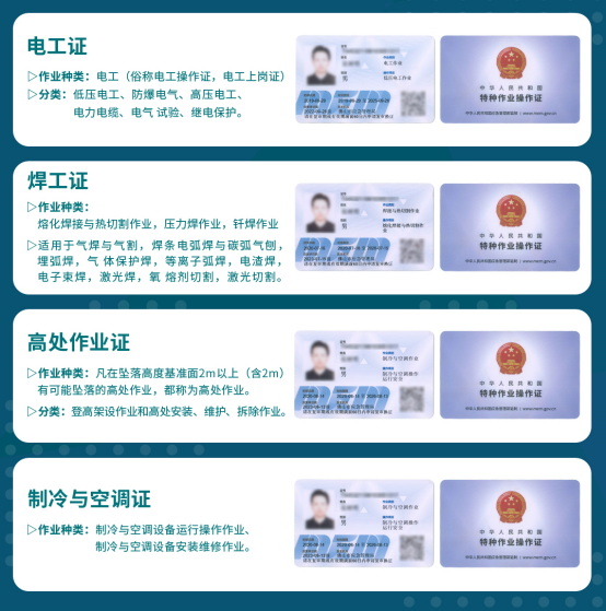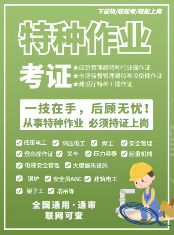 应急管理局 特种行业操作证 | 高压电工、低压电工、焊工、 高处作业、空调制冷、安全员 | 1000元 | 600元 |
