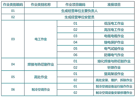应急管理局特种行业操作证作业种类与项目