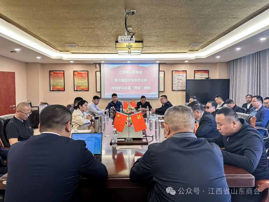 2024年3月29日,江西省山东商会第三届四次会长办公会在商会三楼会议室召开,参加会议的有会长董奇、名誉会长徐天庆,监事长徐光辉、支部书记林青国、在昌副会长共计25人,会议由商会秘书长王传永主持。