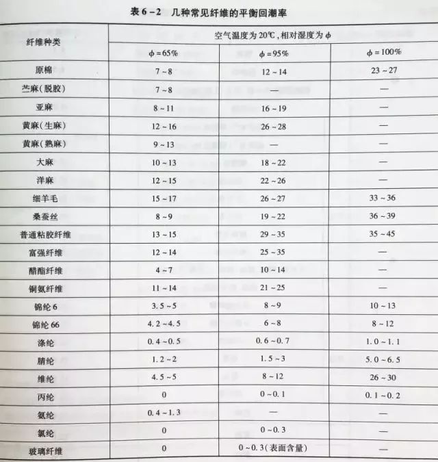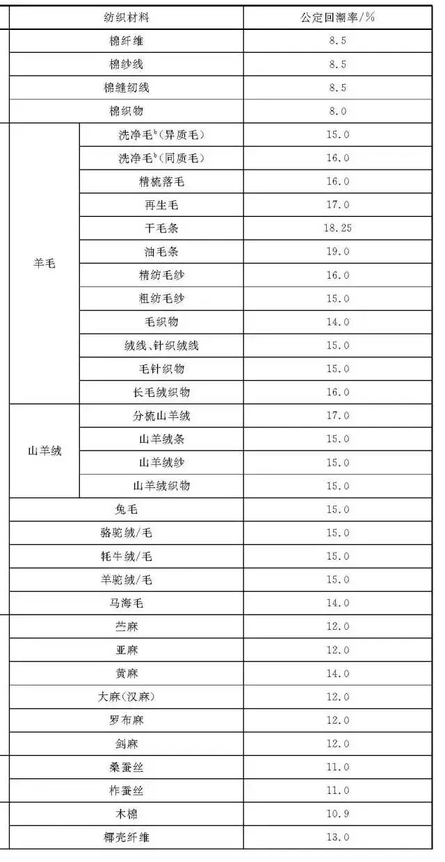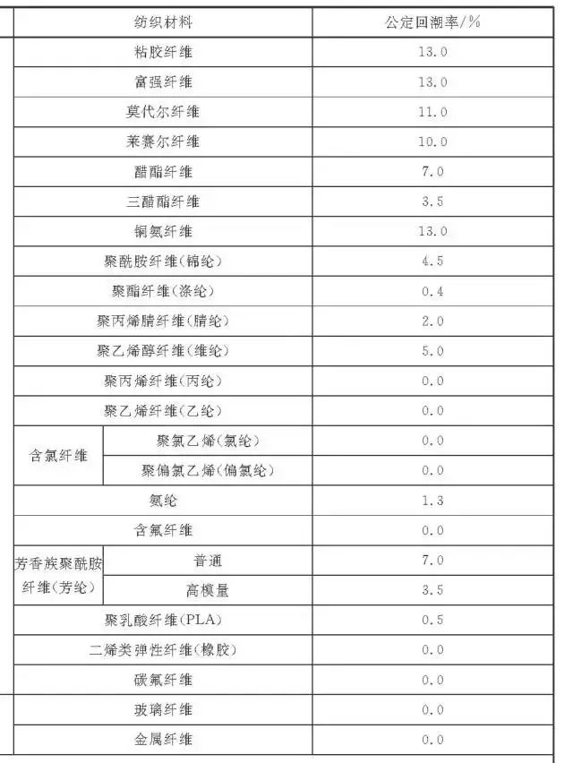 我国常见纺织材料的公定回潮率见表: