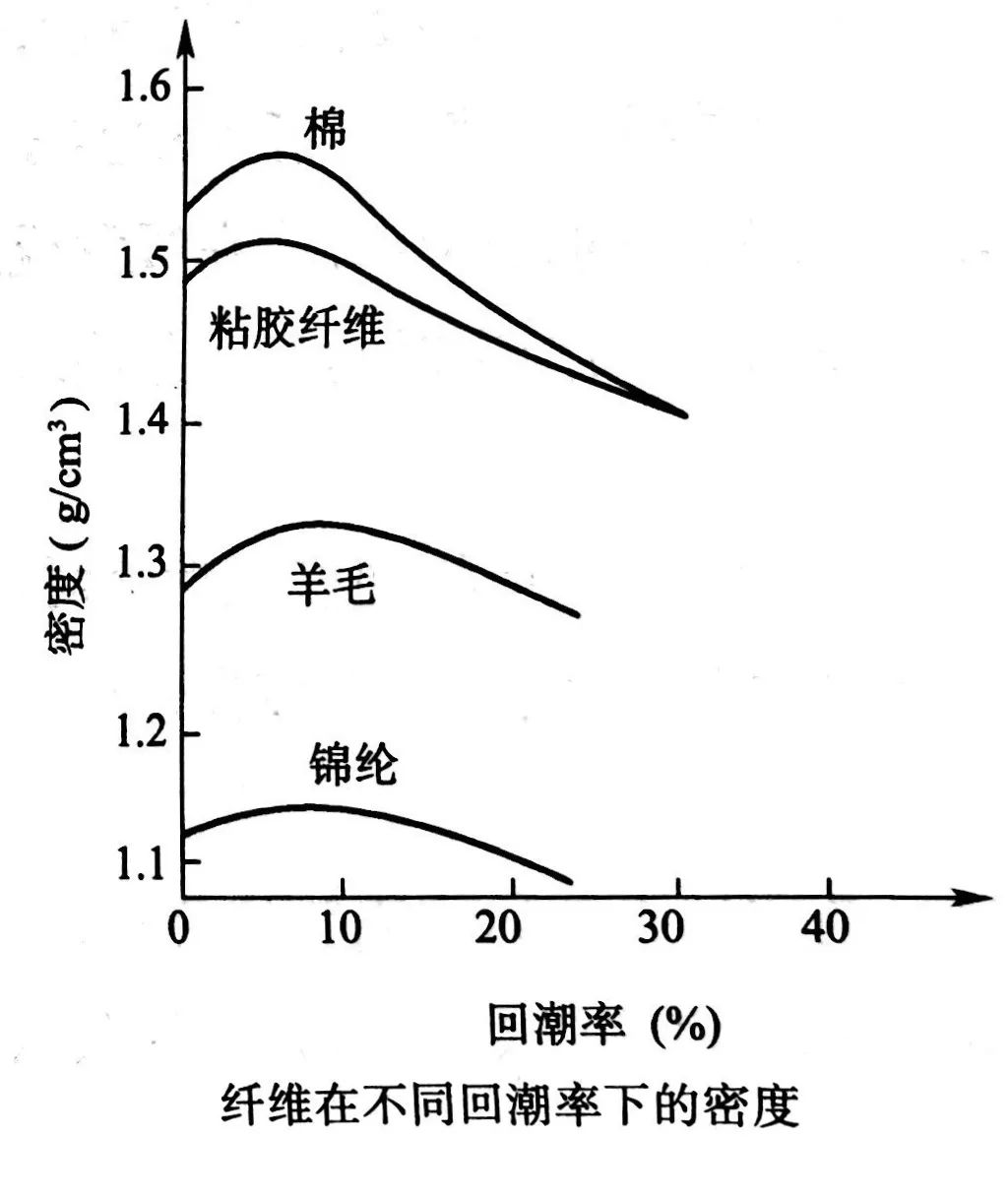 回潮率增大会使纤维体积膨胀,且即横向膨胀远远大于纵向膨胀。