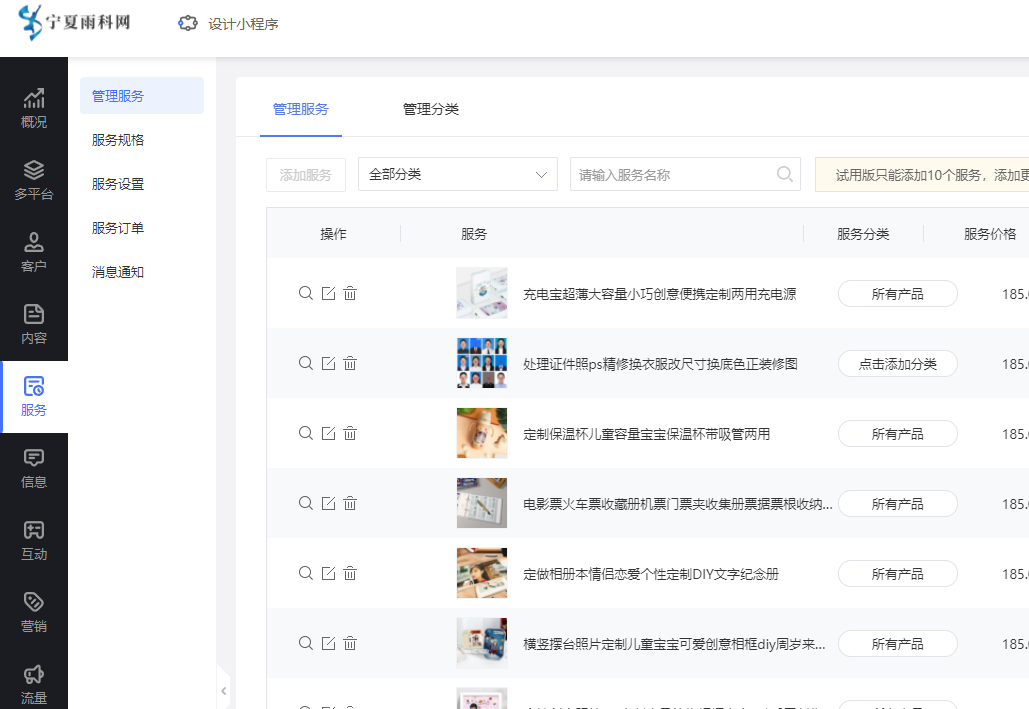 服务全信息上架管理,表单项自定义和各种规则,小程序里分类模块进行展示,客户选择服务填写信息预约(可支付),商家订单管理跟进,还有表单功能更符合多场景客户填写信息提交(可使用表单核销功能,用户提交后生成二维码,到场景后由商家扫码核销),商家和客户都非常高效。
