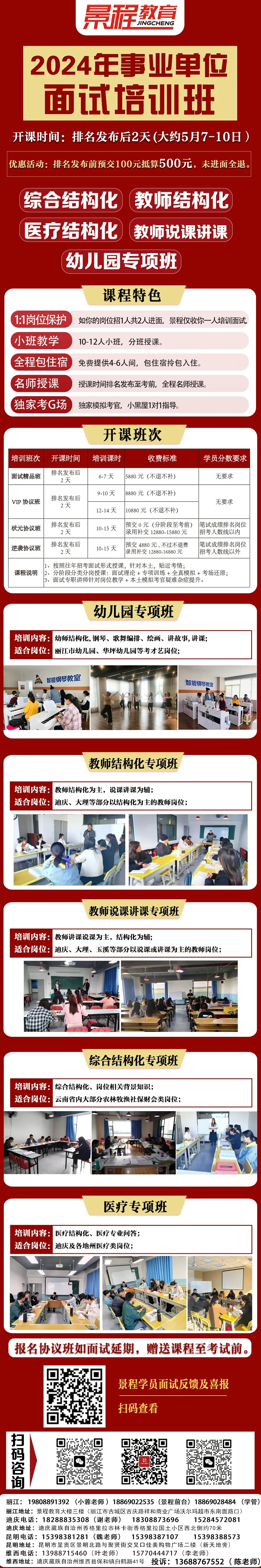 3.资格复审和面试的时间、地点由第三方招聘公司(丽江市古城区景程教育培训有限公司)电话通知考生。