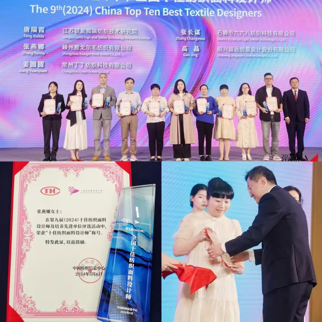 5月6日,2024中国纺织面料设计创新论坛在绍兴国际会展中心隆重召开,中国纺织信息中心开展了“第九届十佳纺织面料设计师及培养先进单位”评选活动,嵊州雅戈尔毛纺设计师张燕娜荣获“十佳纺织面料设计师”荣誉称号。