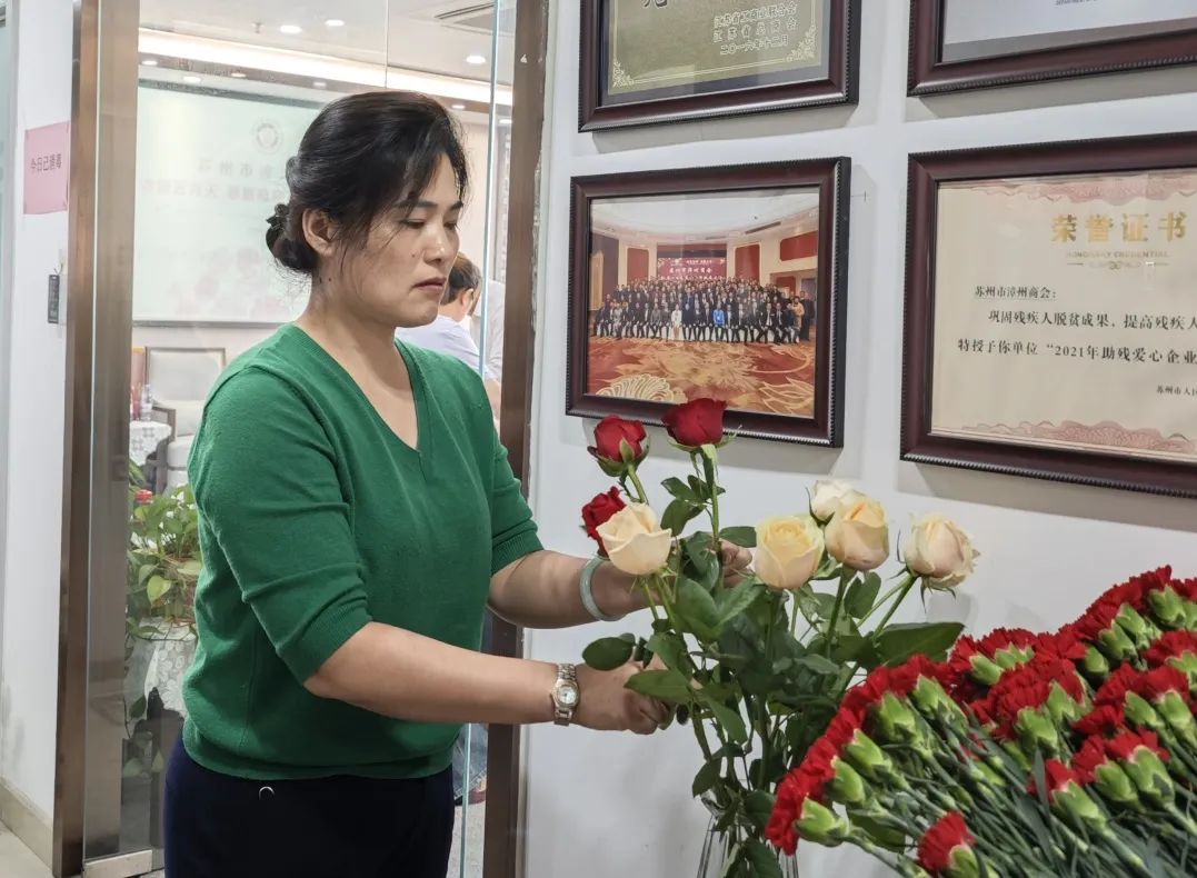 送温暖。由商会副会长、农技工程师林木海由易到难、由浅入深,用家乡方言闽南语讲解插花的基本技巧,指导现场的会员乡贤与家属,如何选材搭配和制作插花。大家边学边练,一起交流探讨,现场氛围甜蜜温馨、气氛活跃。