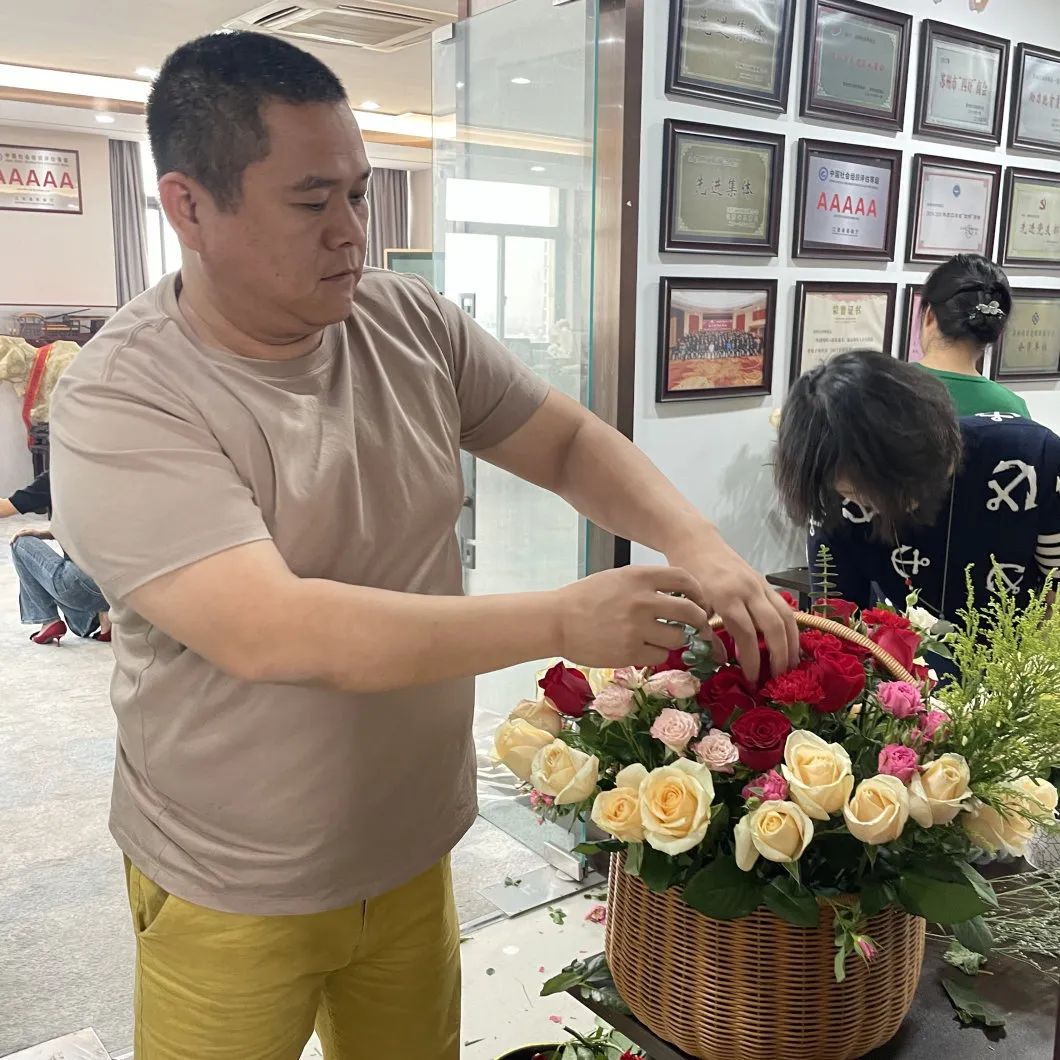 此次活动,商会秘书处按照工作计划,提前对接分工,为大家准备了丰富的插花材料和精美的生日糕点。其中,插花所有材料由商会副会长,农技工程师林木海赞助提供。