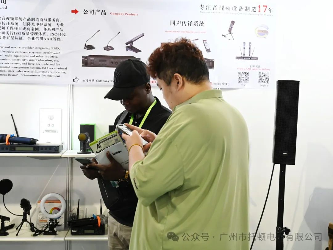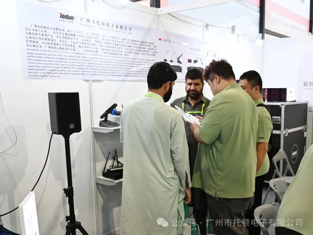 公司展出了最新的音视频设备和会议室解决方案,吸引众多外商的驻足。
