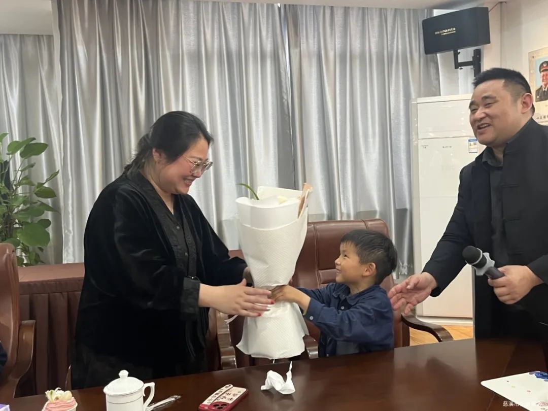 在“向母亲表达内心感激并向母亲献花”环节,现场洋溢着感动与温馨。孩子们依次手捧鲜花,用真挚的话语和美丽的鲜花向母亲们传达了心中的爱与感谢,将活动氛围推向高潮。