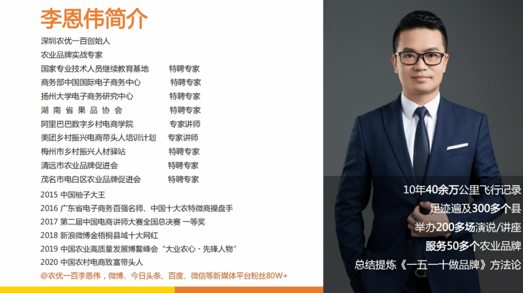 梅商食委会秘书李恩伟(农优一百创始人,农业品牌实战专家,商务部中国国际电子商务中心特聘专家,广东农业农村创业学院创业导师,梅州市乡村振兴人才驿站特聘专家)主讲。