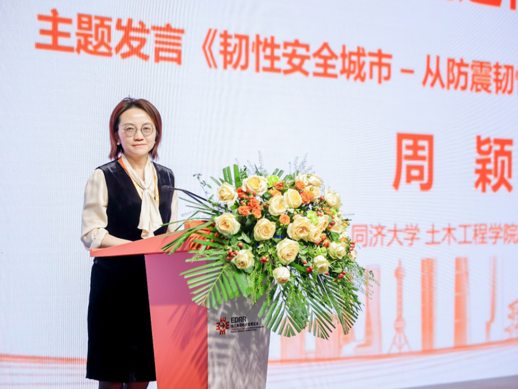 周颖作《高层建筑(群)防灾韧性关键技术应用示范》主题发言,探讨数字模拟和人工智能技术在建筑防灾领域的应用与发展。