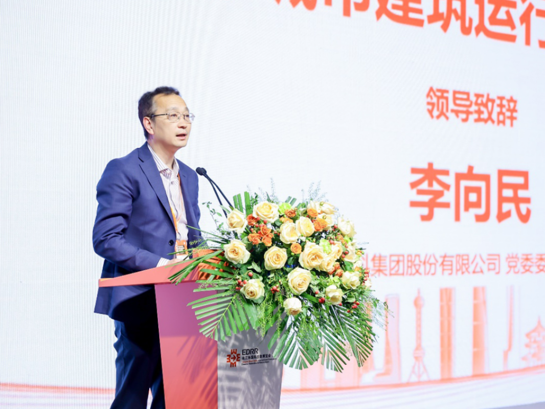 李向民为研讨会致辞,介绍上海建科集团作为国有控股科技服务上市公司,关注城市运行安全防控,为管理部门做支撑,为工程和企业客户提供解决方案。