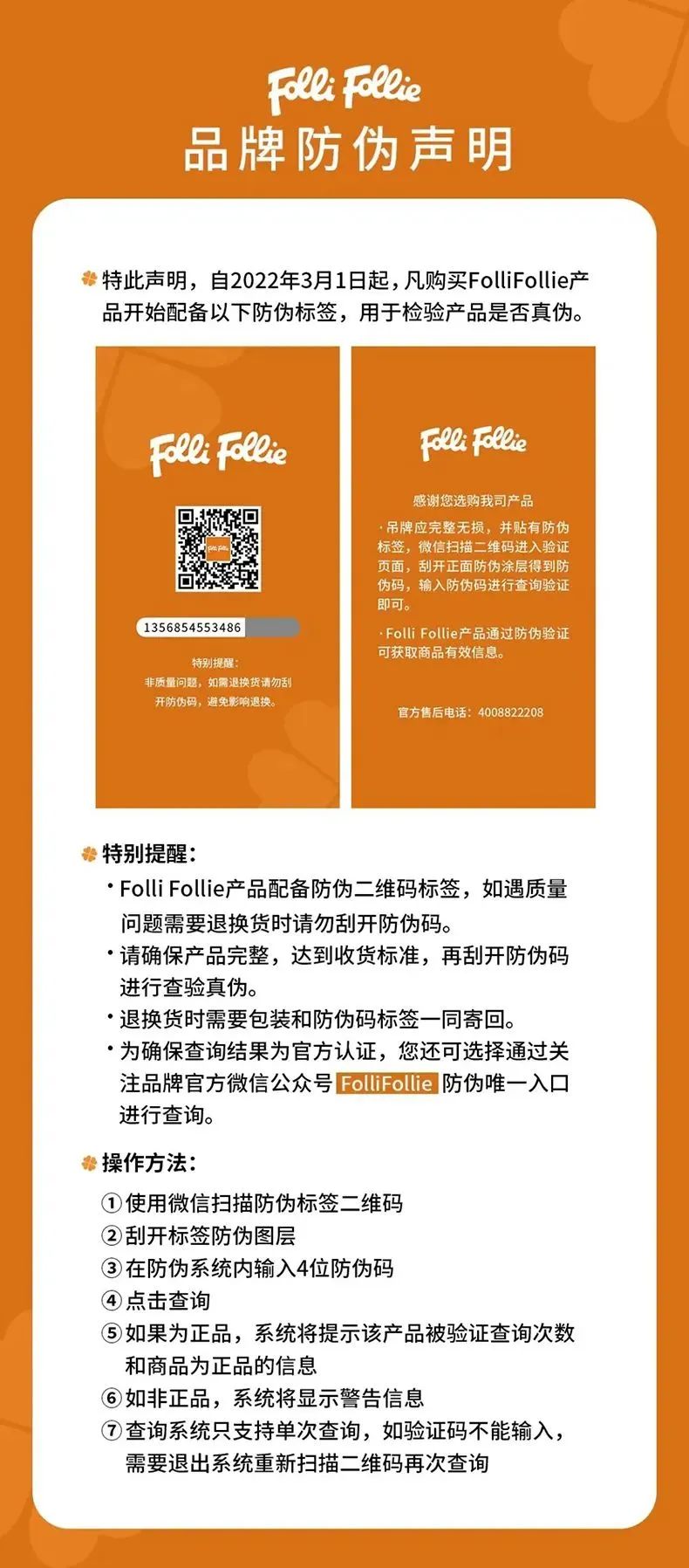 这个验证方式,也是Folli Follie官方公众号列明的防伪方法,童叟无欺!