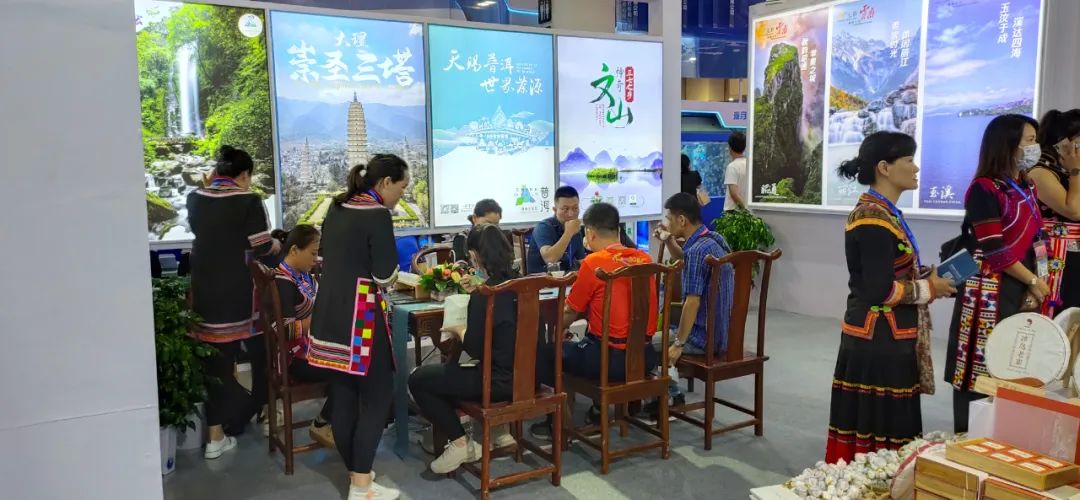 博览会现场,临沧展位滇红、冰岛、昔归普洱茶、非遗伴手礼等旅游商品琳琅满目、芳香四溢,引得游客争相品尝;各色易拉宝、宣传手册、景区门票等宣传资料应有尽有,让人耳目一新、惊喜不断;各界旅游业内人士竞驻足畅谈交流,精彩纷呈。