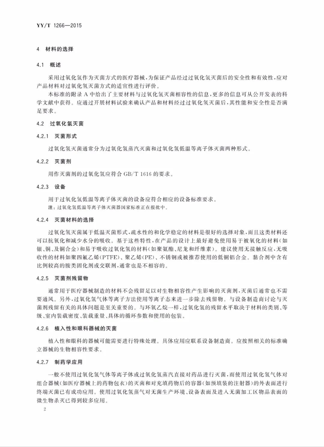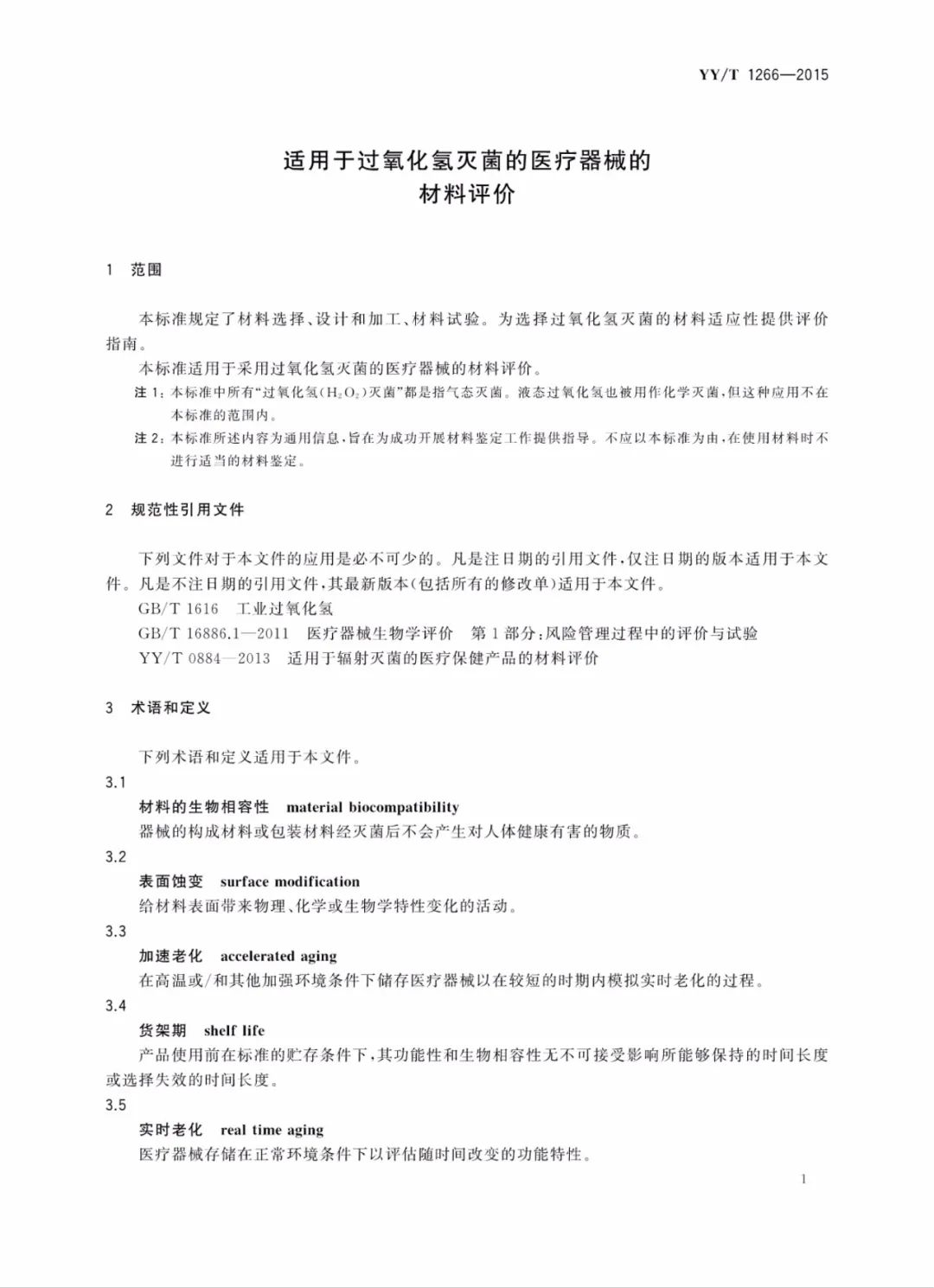 行业标准 | 适用于过氧化氢灭菌的医疗器械的材料评价 YY/T 1266—2015