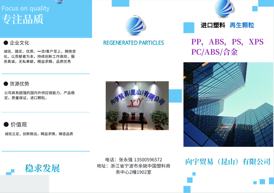 公司坐落于浙江省宁波市余姚中国塑料商务中心2幢1902室,有着强大的市场能力,优质的一手进口货源,秉着服务为宗旨-客户至上,货源充足,优质价格。