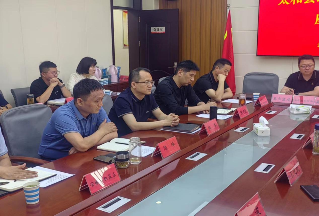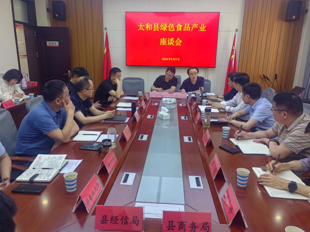 5月9日,省食品行业协会常务副会长兼秘书长邵栋梁、专职副会长王化斌、及智库成员等一行赴太和县调研绿色食品产业发展。太和县委常委、统战部部长陶军,县政协副主席、工商联主席张可畏,县工商联党组书记陈峰及各职能部门、乡镇政府负责人和相关企业代表参加了座谈交流。