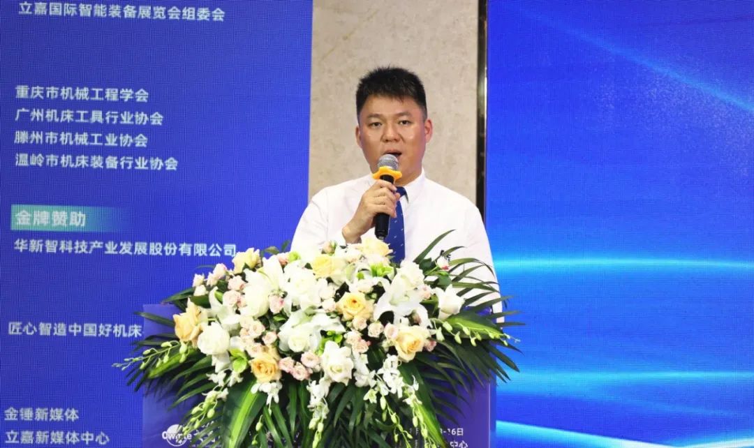 ▲华新智科技产业发展股份有限公司董事长-黄维斌,作《工业母机高端装备未来工厂整体解决方案分享》创新演讲