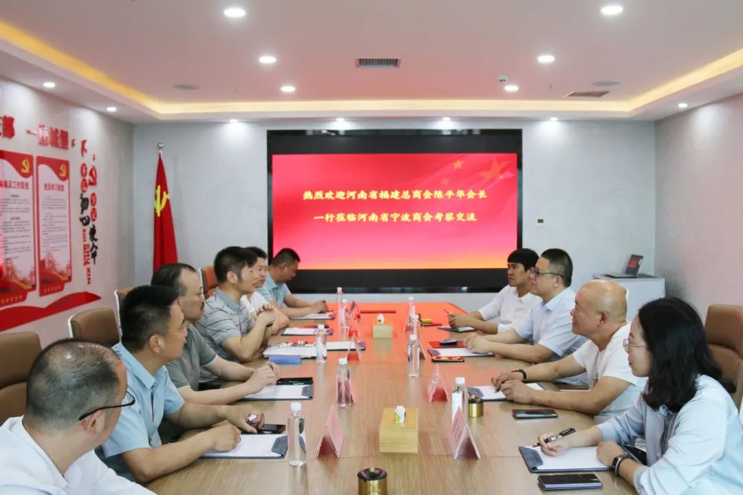 5月13日,河南省福建总商会执行会长兼秘书长陈平华,执行会长陈革水、杨昆,常务副会长郑文,副会长杜种元,专职副秘书长卓文盛,理事陈禄官,监事郑伟康及秘书处工作人员等一行到河南省宁波商会学习交流,受到河南省宁波商会会长干益飞,执行会长袁根富,党支部书记康文秀,副会长何国平等人的热情款待。
