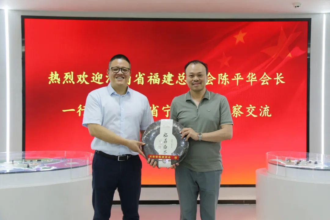 执行会长陈革水代表总商会向宁波商会赠送福建特产福鼎白茶礼品