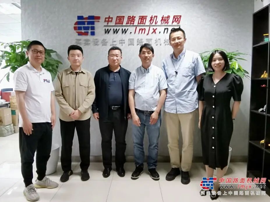 中国机电产品进出口商会工程农业机械分会于东科秘书长(左三)、机床工具分会副秘书长郭慷虓(右二)祖旭(左二)与中国路面机械网董事长方剑仙(右三)、主编冯转(左一)、中国路面机械网总经理方雨霞(右一)合影留念