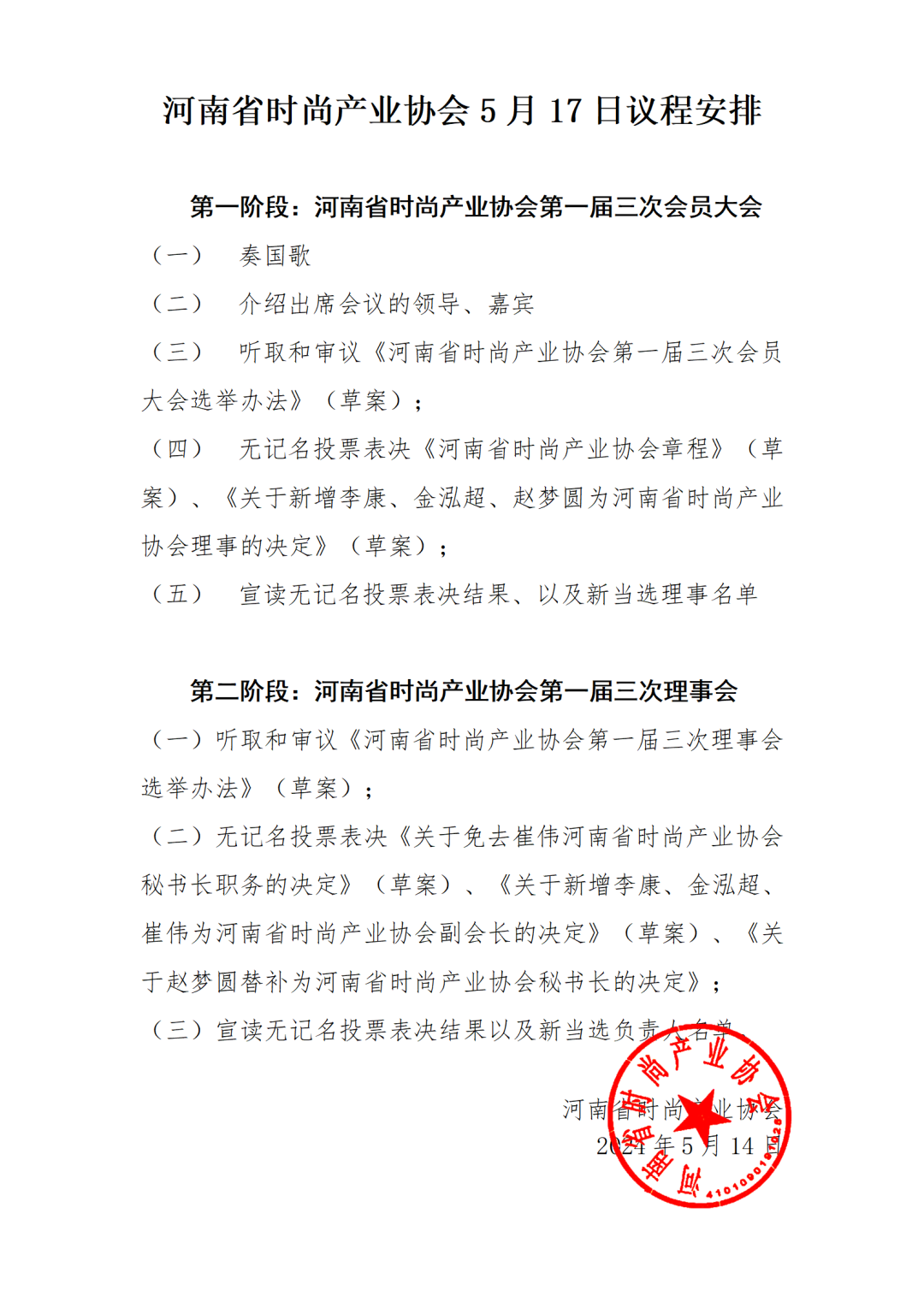 官方通知 | 关于5月17日河南省时尚产业协会会员大会议程