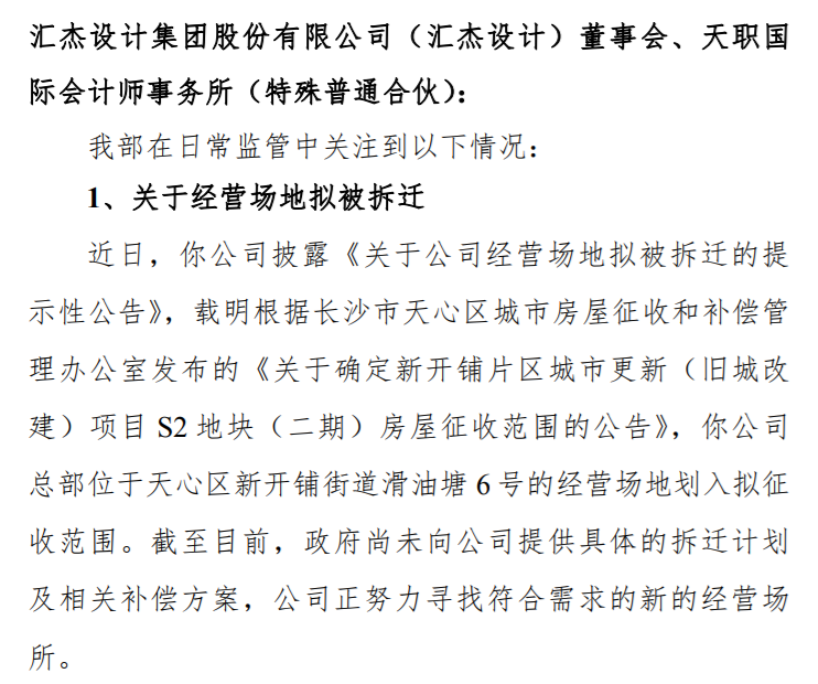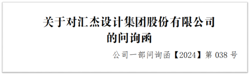 关于对汇杰设计集团股份有限公司的问询函