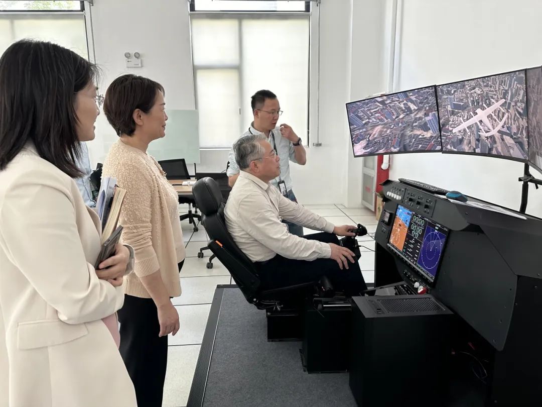 走访中,祝学军实地察看了岸峰设计自主研发的技术产品以及沃兰特航空的飞机驾驶舱仿真平台、飞控集成实验平台等飞机研制设施。