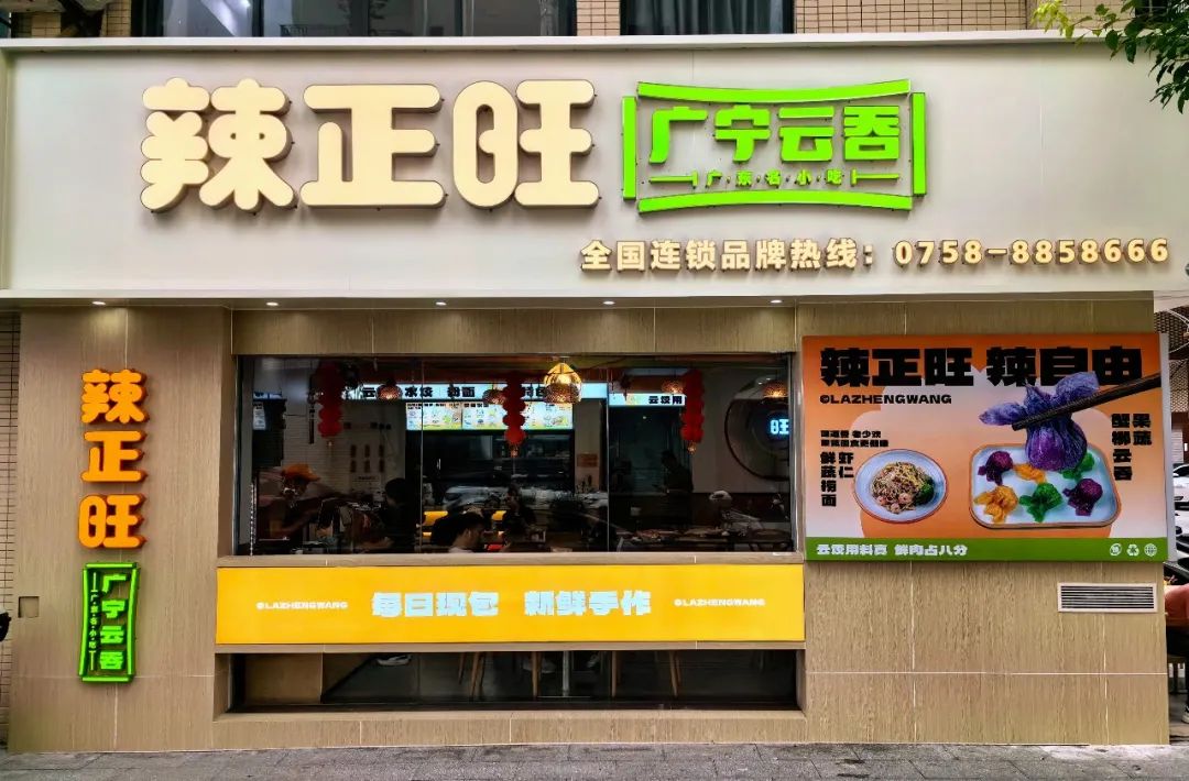 有好品牌的加持,好服务与好品质在这也是“涨客法宝”。辣正旺不仅传承了传统的广宁云吞制作工艺,更以创新的理念推出了一系列特色菜品,如麻辣鲜笋饺、七色果蔬云吞、三色果蔬面等,不仅外观诱人,口味更是别具一格,为消费者带来了全新的味觉体验。这些创新菜品引领着地方美食的风味潮流,让广宁云吞品牌更具有时代感。