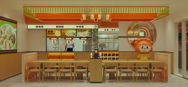 广宁云吞公共品牌门店设计(以辣正旺旗舰店为例),充分融入了本土特色元素,采用简洁现代的装修风格,更注重品牌效应。门店宽敞明亮,店内优雅的用餐区、精致的装饰等,注重消费者的用餐体验,提供了舒适优雅的用餐环境。
