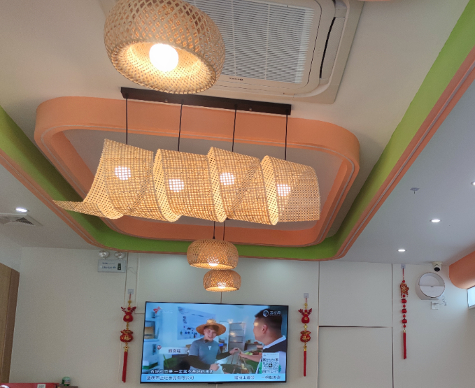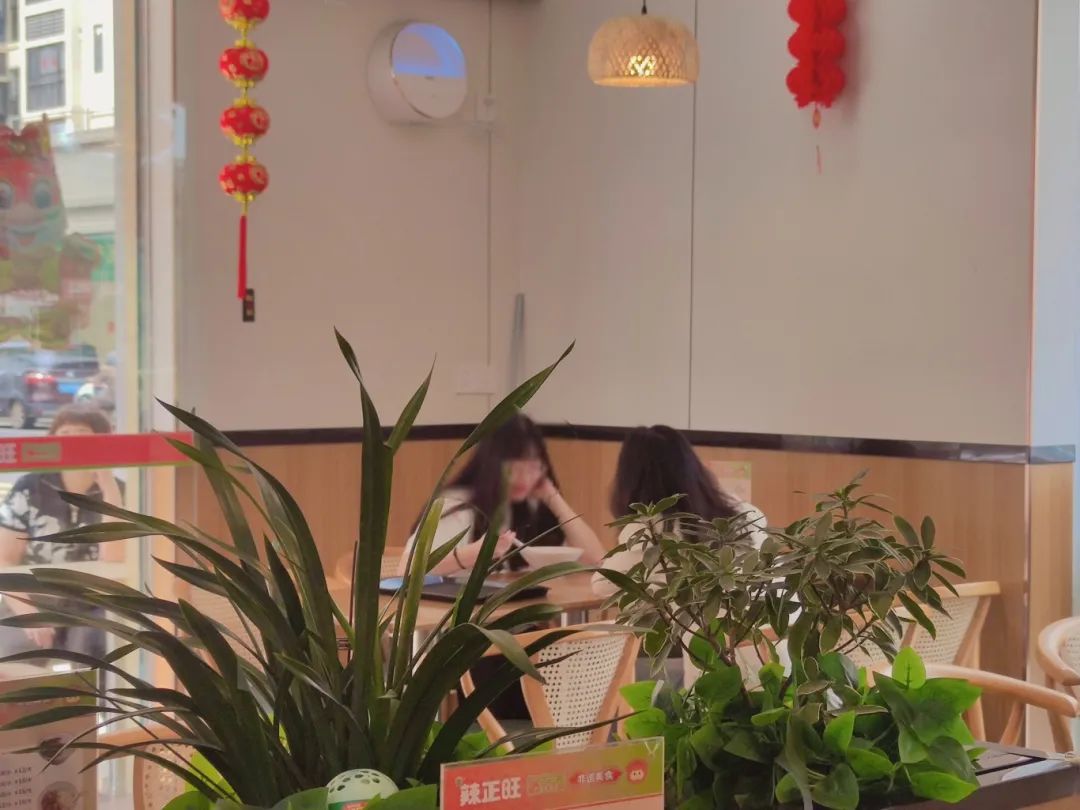 辣正旺旗舰店的整体外观,设计现代而大气,广宁云吞公共品牌的标识清晰可见。竹制顶灯、木质餐椅、绿植点缀……店内装饰精致,用餐区宽敞明亮,让顾客在品尝美食的同时,也能享受到视觉上的愉悦。