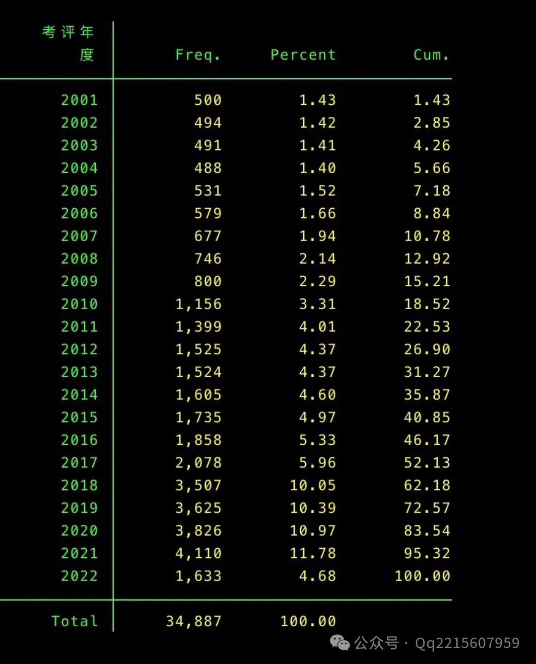 数据范围:2001-2022年,共 34887 条观测值,全部A股上市公司