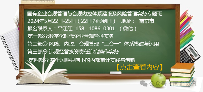 【5月22-25日南京市】国有企业合规管理与合规内控体系建设及风险管理实务专题班