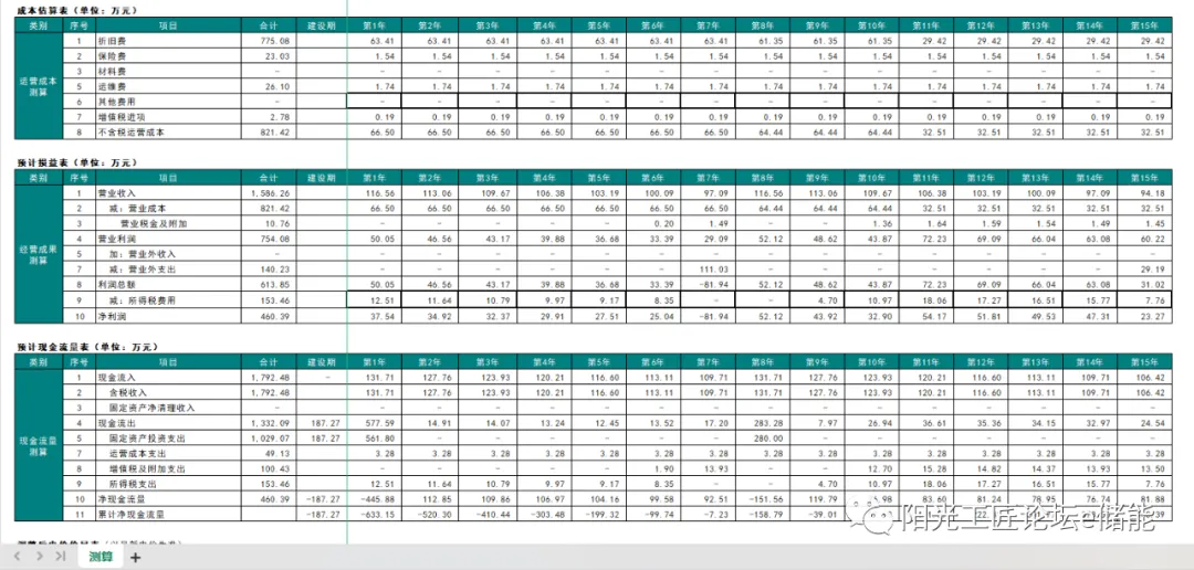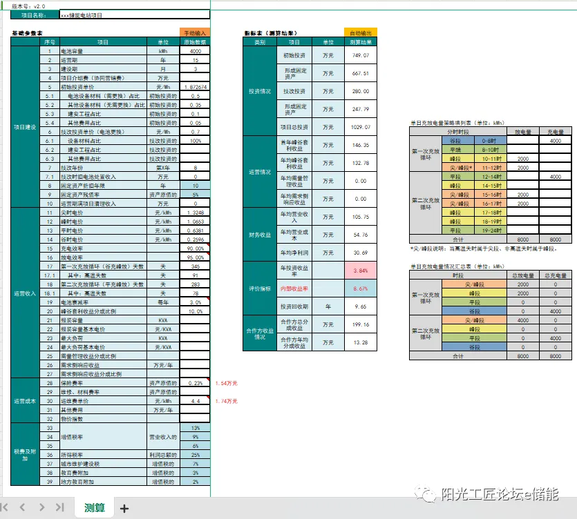 用户侧储能项目经济可行性测算模型含以下表: