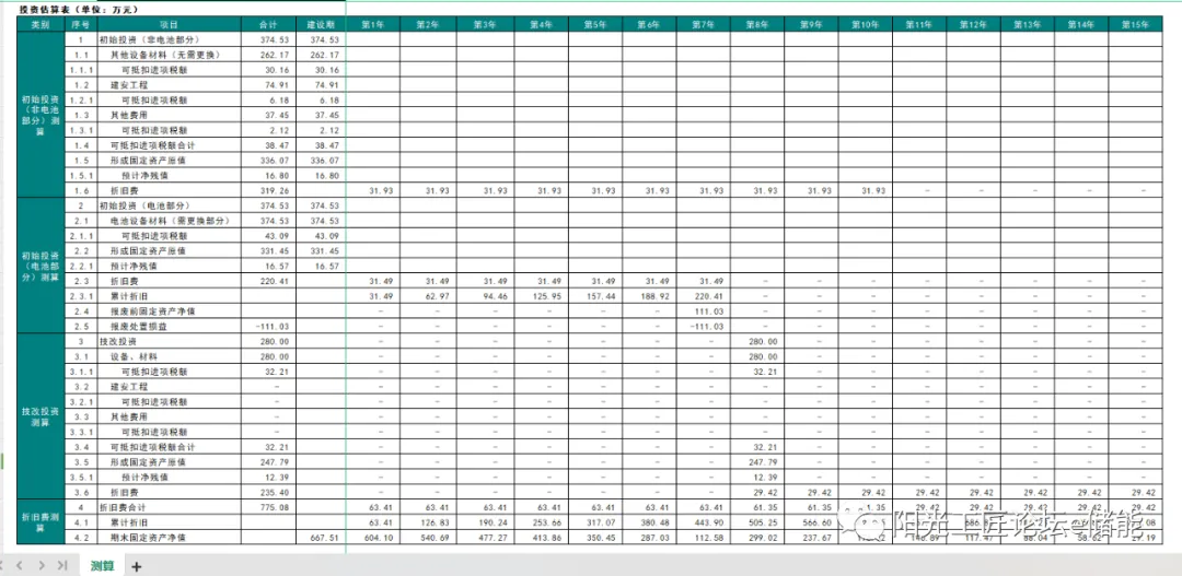 投资估算表
